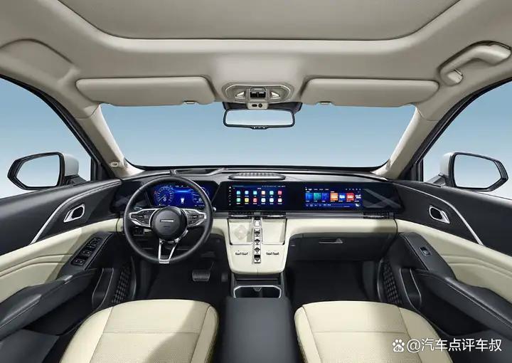 在内饰层面,枭龙MAX虽然设计手法区别于绝多大数主流插混SUV,但依然能给人一种别样的时尚感。中控配备了由12.3英寸中控屏+12.3英寸副驾屏+12.3英寸全液晶仪表组成的贯穿超感悬浮大屏,其中副驾屏搭载了副驾专属娱乐系统,可让坐在副驾的乘客独享专属的用车体验。同时还内置了全新一代Coffee OS智能座舱系统和咖啡智能驾驶系统,可带来业内主流的人机交互体验和更轻松、更舒适、更安全出行生活。