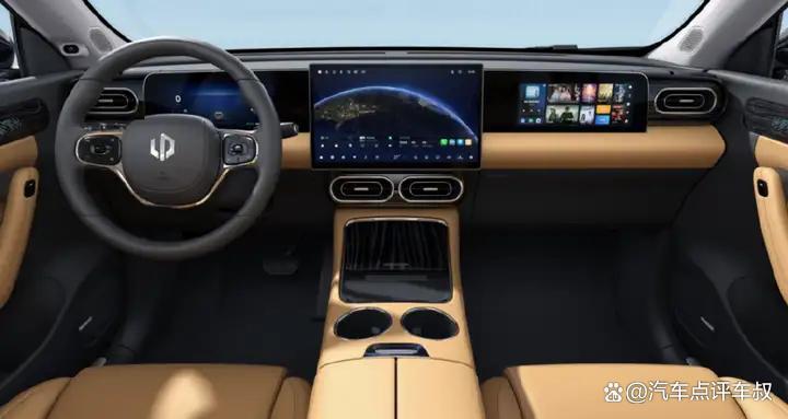 坐进车内,矢量星环设计的内饰风格非常简约,做工用料也比较扎实,整个座舱高级感十足。中控配备14.96英寸悬浮式中控屏,搭载了AI天玑系统和高通骁龙SA8155P芯片,界面清爽,功能分区清晰明了,操控流畅,内置的AI大模型,还能让人机交互能力更加拟人化。同时还全系标配了XPILOT智能辅助驾驶系统,在2颗英伟达芯片和2颗激光雷达的加持下,还能实现更高阶的智能辅助驾驶,整个智能化体验绝对要领先于同级同价位的竞品。